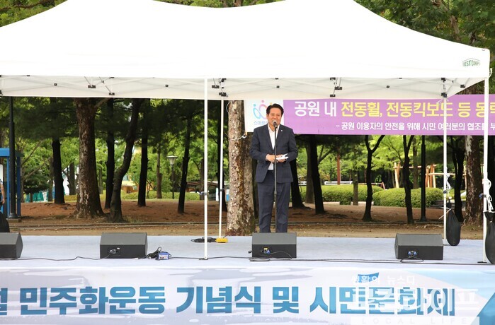 이날 행사에서 최대호 안양시장은 축사를 통해 “오늘 우리는 1987년 6월 군부독재에 맞서 민주주의를 쟁취한 시민들의 함성을 기억하고 숭고한 희생을 함께 기리기 위해 이 자리에 모였다”고 의미를 부여했다.