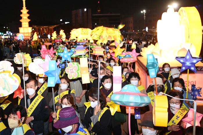 사진/지난 23일 수원시 팔달구 화성행궁 광장에서 ‘2022 수원 연등축제’가 열려 불교계와 시민들이 함께 연등축제를 즐기고 있다.(사진제공=수원시)