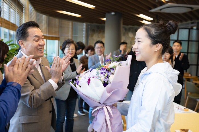 아울러 이 시장은 신 선수는 청명중학교 3학년 때 최연소 국가대표가 됐고, 이번 아시안게임에선 21년 만의 여자복식 금메달을 포함해 4개 출전 종목 모두 메달을 따냈다고 밝혔다.