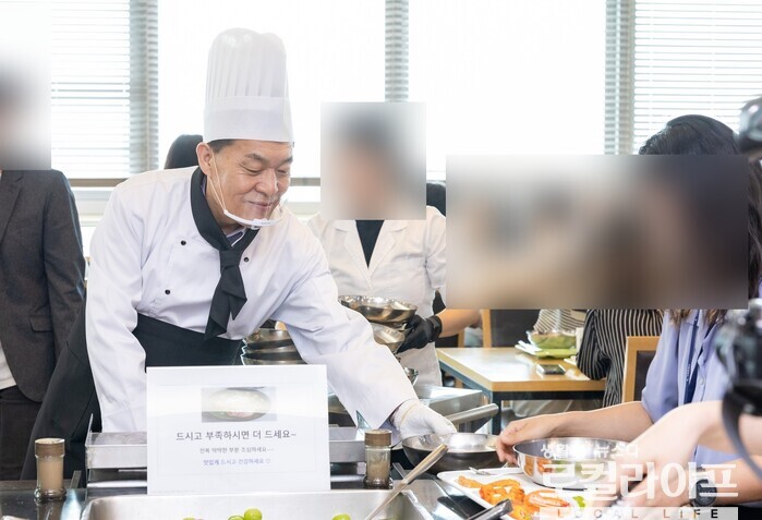 [수원=로컬라이프] 송준형 기자 = 이재준 수원특례시장이 중복을 맞아 30일, 직원식당에서 삼계탕 배식을 했다.