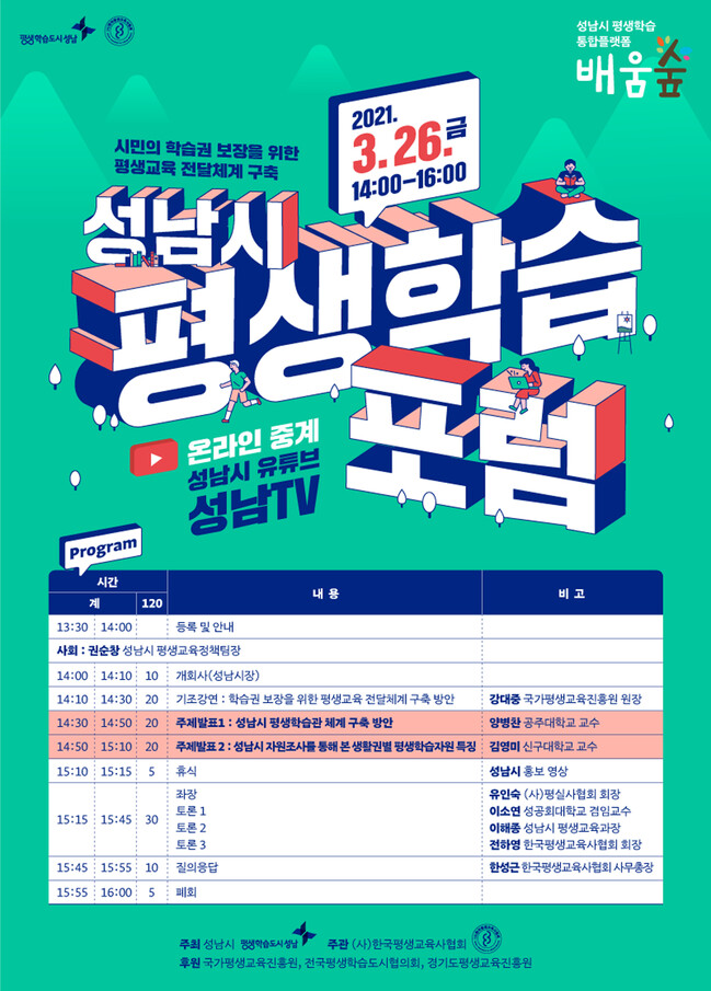 사진/성남시 위례 평생학습관 25일 개관 기념해 26일 개최하는 평생학습포럼 안내 포스터(성남시 제공)