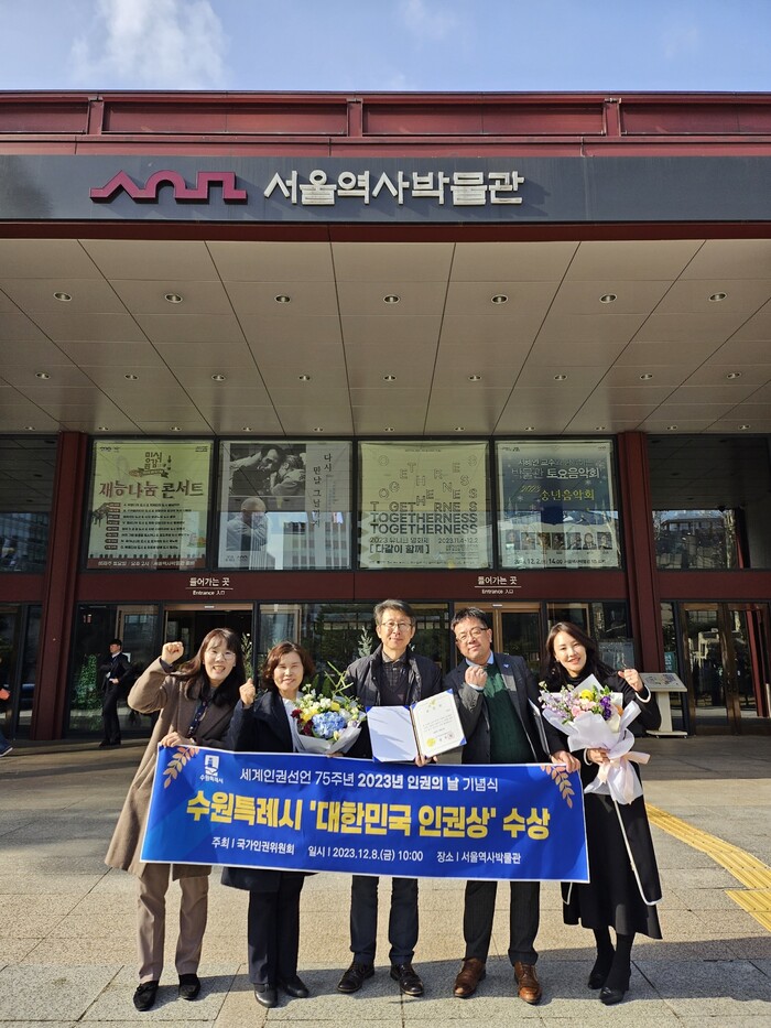 수원시가 8일 서울역사박물관에서 열린 세계인권선언 75주년 2023년 인권의 날 기념식에서 ‘대한민국 인권상 국가인권위원회위원장’ 표창을 받았다.