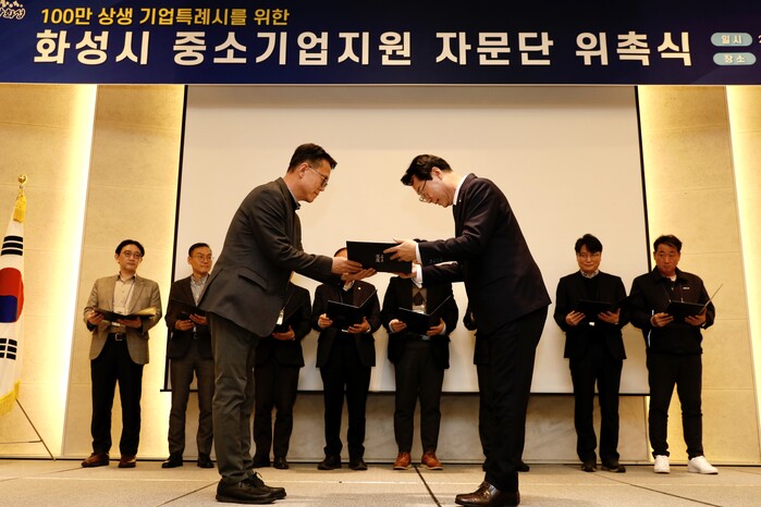 이날 위촉식에는 정명근 화성시장을 비롯해 삼성전자 DS대외협력 파트, 현대차 남양연구소, 기아 오토랜드화성 관계자 등 66명이 참석해 위촉장 수여와 자문단 간담회가 진행됐다.