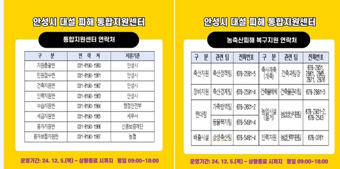 다음은 ‘안성시 대설 피해 통합지원센터’ 운영 관련 정보다.
