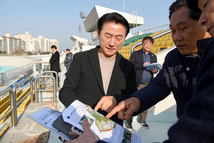 [의정부=로컬라이프] 송준형 기자 = 김동근 의정부시장은 16일, 종합운동장을 둘러보았다.