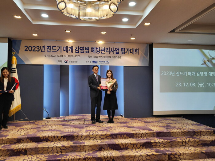 시상식은 8일 세종시티 오송호텔에서 열린 ‘2023년 진드기 매개 감염병 예방관리사업 평가대회’ 중 진행됐다.
