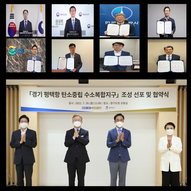 이번 협약식에는 이재명 경기도지사와 조명래, 강금실 경기도 기후대응・산업전환 특별위원회 공동위원장, 채희봉 한국가스공사 사장, 김동욱 현대자동차 부사장 등 총 26명의 민・관 기관 대표들이 비대면 온라인 방식으로 참여했고, 문승욱 산업통상자원부 장관, 문성혁 해양수산부 장관도 축사를 통해 평택항 탄소중립항만 조성에 힘을 보태기로 했다.