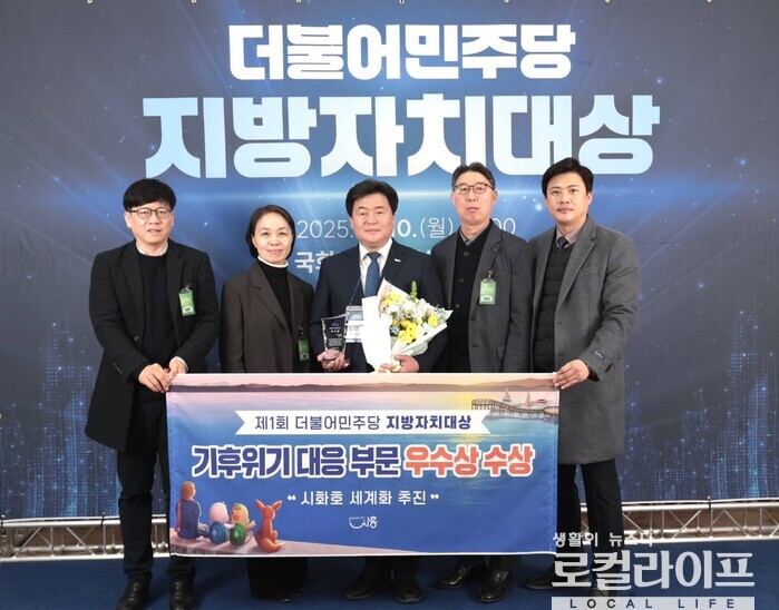 [시흥=로컬라이프] 송준형 기자 = ‘제1회 더불어민주당 지방자치대상’ 시상식에서 시흥시가 ‘기후위기 대응 부문 우수상’을 수상했다.