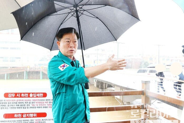 [광명=로컬라이프] 송준형 기자 = 박승원 광명시장이 폭우 상황에 대비해 하천을 점검했다.