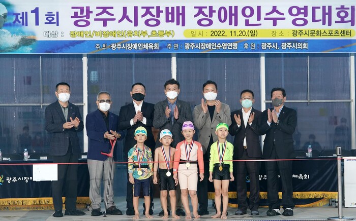 방 시장은 오늘 ‘제1회 광주시장배 장애인 수영대회’에도 불편함을 이겨내는 선수들과 가족들이 계셨다며, 경기에 임하는 순간 불편함을 초월해 선수로서 최선을 다하는 진지한 모습은, 보는 이에게 긴장감이 들게 한다고 말했다.