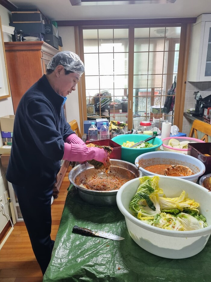 특히 속을 만드는 작업은 아내의 몫인데, 젓갈을 끓이고 찹쌀로 풀을 쑤고, 마늘ㆍ생강을 갈아서 넣고, 무를 썰어서 채를 만들어 갓ㆍ파ㆍ마늘 등과 함께 버무려야 하는 만큼, 노동 강도가 꽤 높다는 사실을 매번 확인하고 있다고 전했다.