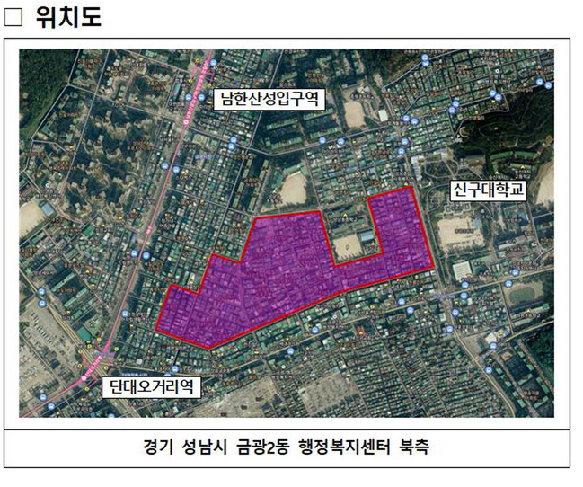 후보지로 선정된 금광2동은 행정복지센터 북측의 노후 단독주택, 빌라 등이 밀집한 지역으로 주민들이 직접 동의서를 작성, 국토부에 공모 신청해 선정됐다