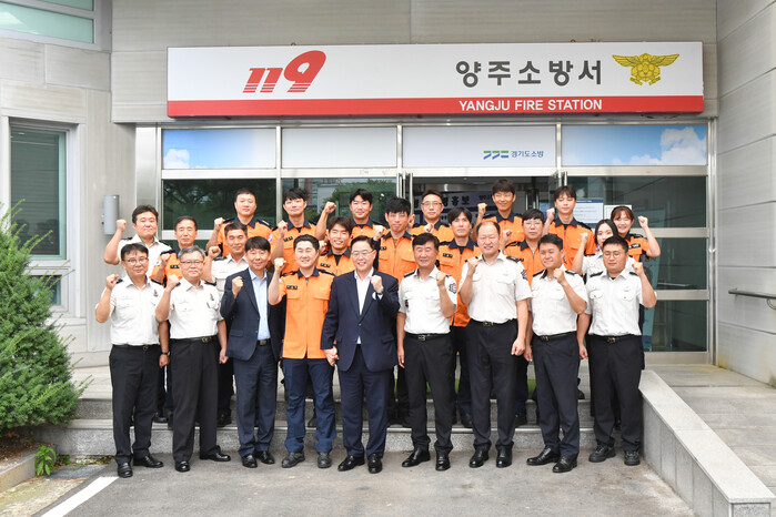 강수현 양주시장이 26일 오전 추석 연휴를 앞두고 양주소방서를 방문해 직원을 격려했다.
