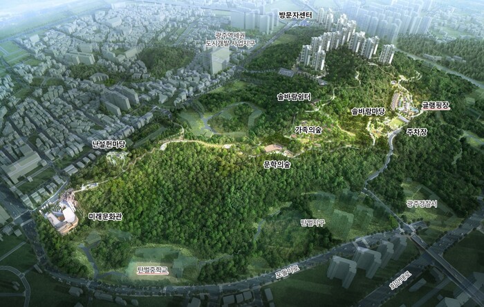 중앙공원은 총 44만8천192㎡ 규모로 ▲공원시설 34만7천625㎡ ▲비 공원시설 10만 567㎡로 구성되며 광주시와 ㈜지파크개발이 공동 시행하고 있다.
