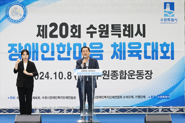 장애인이 체육을 통해 화합하는 제20회 수원특례시 장애인 한마음 체육대회가 8일 수원종합운동장에서 열렸다.