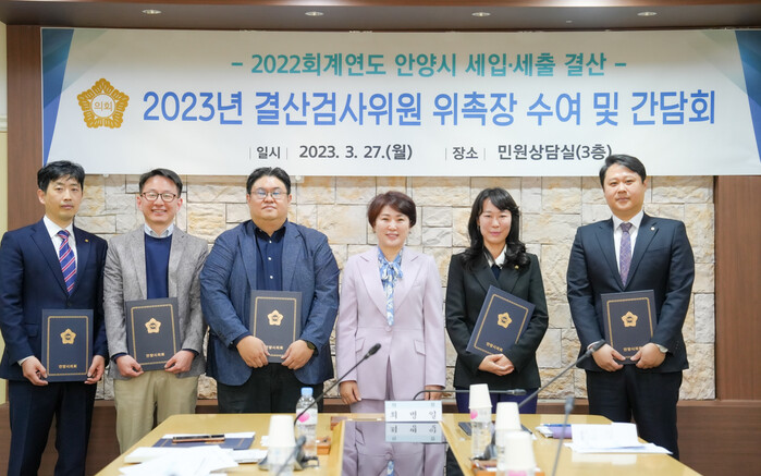 안양시의회는 지난 27일 2022회계연도 세입·세출 결산 등의 검사를 수행할 결산검사위원을 위촉했다고 밝혔다.