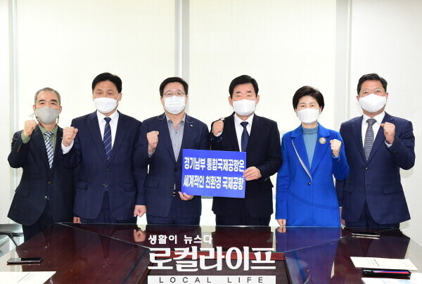 [수원=로컬라이프] 송준형 기자 = 염태영 수원시장과 수원지역 국회의원들이 750만 인구 규모의 경기남부권역의 상생발전을 위한 통합국제공항 필요성에 대해 공감하며 협력을 다짐했다.