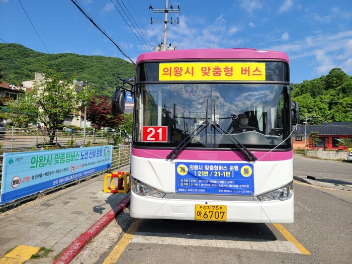 평일에는 출퇴근 및 통학형으로 2대가 운행되고 주말과 공휴일에는 노선을 달리해 교통취약지역 생활편의형으로 1대가 운행된다. 평일은 21번 시내버스가 「능안마을~백운밸리~백운고~갈뫼중~모락고」를 운행하고, 주말과 공휴일은 21-1번 시내버스가 「능안마을~롯데타임빌리지~새터마을~청계주민센터」를 순환한다. 맞춤형 노선버스 운행손실금의 일부는 경기도와 의왕시가 50%씩 부담하며, 버스요금은 일반 시내버스 요금이 적용된다.