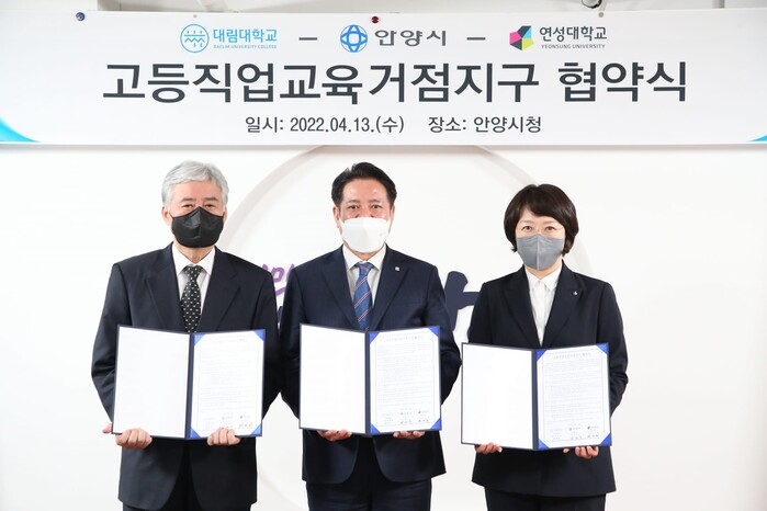[로컬라이프] 송준형 기자 = 안양시와 연성·대림대가 고등직업교육거점지구 사업 추진을 위한 거버넌스 협약을 맺었다.