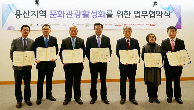 서울드래곤시티가 지난 29일 서울시 용산구 국립중앙박물관 6층 대회의실에서 용산지역의 국립박물관, 용산구청, 민간기업 등 총 8개 기관이 참여한 가운데 ‘용산지역 문화관광 활성화를 위한 업무협약’을 체결했다.