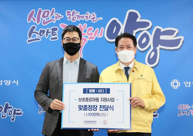 특히 기부식에 참석한 김덕영 인사문화실장님은 ‘시청 앞 작은 사무실에서 누구에게도 기댈 곳 없이 어렵게 사업을 시작했던 시기에 안양시가 손 내밀어 디딜 언덕이 되어주었던 경험이 없었다면 지금의 성장을 이루지 못했다‘며, 안양시에 늘 감사한 마음을 전하고 싶었는데 그 마음을 보호 종료 아이들에게 든든한 언덕이 되는 것으로 보상하고 싶었다고 전했다.