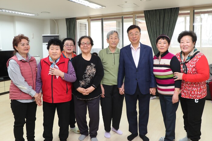 신상진 성남시장이 17일 수정구 창곡동에 위치한 위례중앙경로당을 방문해 시설을 점검하고 어르신들과 소통 시간을 가졌다.