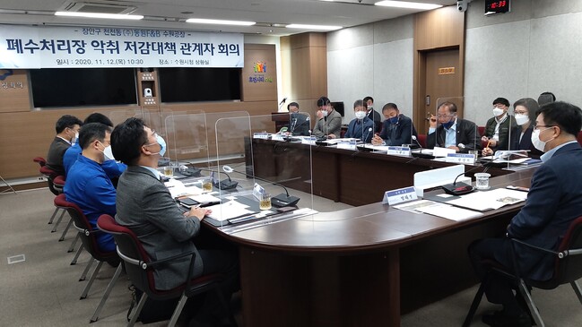 사진/염태영 수원시장이 지난해 11월 악취 유발 기업 관계자들과 대책회의를 주재하고 있다.