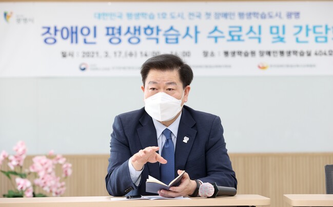 박승원 시장은 “코로나19로 어려운 시기에도 긴 시간동안 성실히 교육을 마치고 오늘 수료하게 된 것을 진심으로 축하드린다”며 “광명시는 올해를 평생학습의 해로 정하고 소외와 차별 없는 포용적 평생학습도시로의 도약을 준비하고 있다. 여러분들의 활동으로 광명시 장애인 학습자의 평생 학습에 날개를 달 수 있길 바라며, 모두가 행복한 장애인 평생학습도시 광명을 함께 만들어 가자”고 말했다.