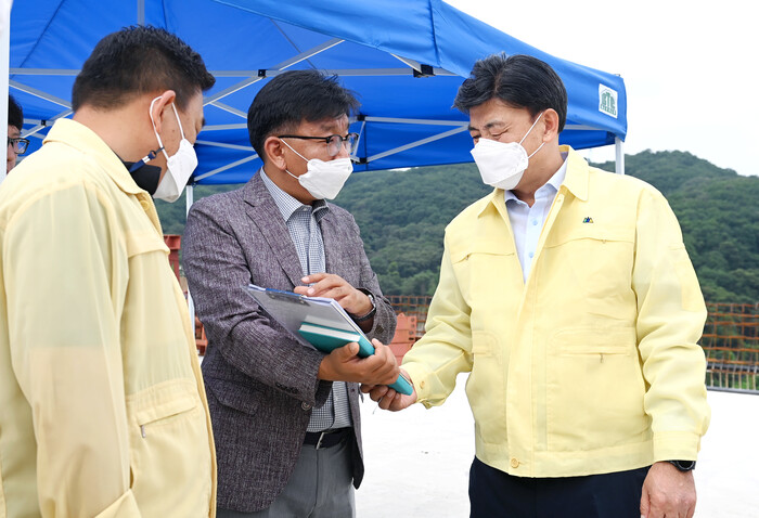 방 시장은 공사 추진현황 브리핑을 받고 현장을 돌며 절개지,구조물 및 인근 하천 등을 비롯해 주변지역 토사나 우수로 인한 수방대책과 안전관리 상태 등을 집중 점검했다.