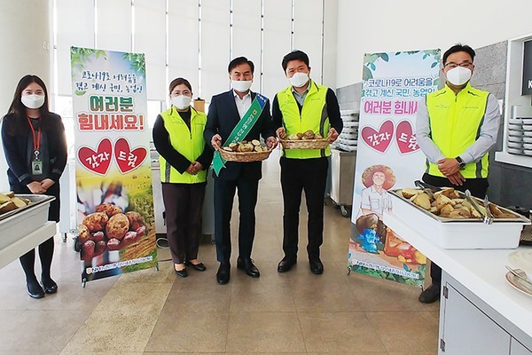 김강훈 센터장은 농협은행은 코로나19로 어려움을 겪고 있는 감자 농가에 앞으로도 농업인의 값진 땀방울이 헛되지 않게 농업 농촌에 대한 지속적인 관심과 실질적 지원을 위해 최선의 노력을 다하겠다‘고 말했다.