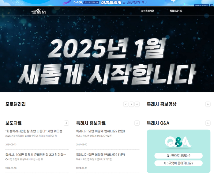 화성시(시장 정명근)가 2025년 1월 1일 특례시 출범 D-100일 전인 23일, 특례시에 대한 시민들의 이해를 돕기 위해 전용 홈페이지를 개설했다고 밝혔다.