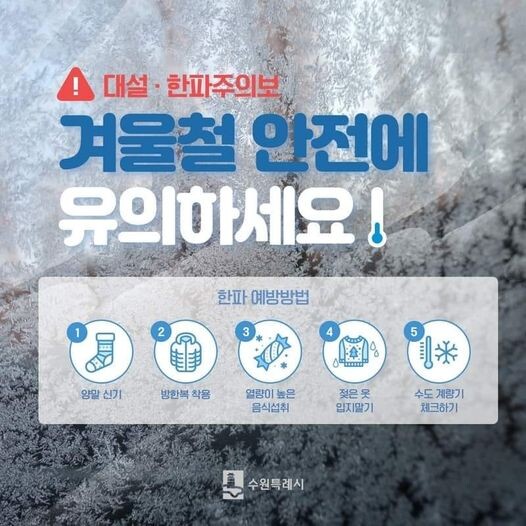 아울러 시민 여러분께서도 안전한 겨울을 위해 한파 예방 방법을 꼭 확인하시길 부탁드린다고 말했다.