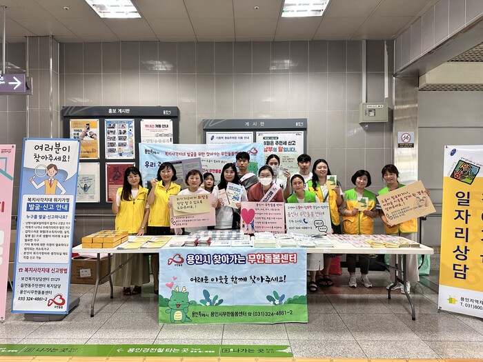 지난달 26일부터 시작한 이번 여름철 무한돌봄센터에서는 폭염에 취약한 위기가구를 집중 발굴하고 고충을 청취하기 위해 처인구 이동읍을 시작으로 6회에 걸쳐 지역 내 모텔, 원룸, 고시원, 임대아파트, 지하철 역사 등 150여곳에서 홍보활동을 진행했다.