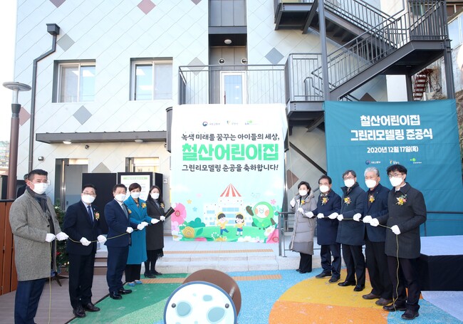 사진/광명시는 국토교통부 주관 ‘공공건축물 그린리모델링’ 공모사업에 선정된 시립철산어린이집(광명시 철산동 소재) 리모델링 공사를 무사히 마치고 12월 17일 준공식을 가졌다.(광명시청 제공)