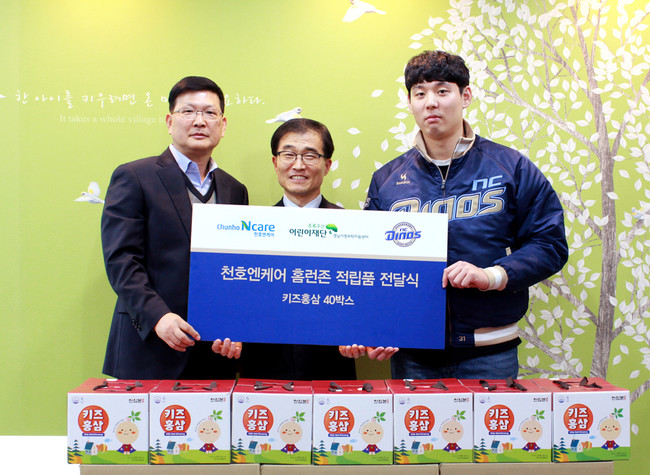 건강식품 전문기업 천호엔케어(대표 이승우)가 프로야구단 NC 다이노스가 올 시즌 ‘천호엔케어 홈런존’을 통해 적립한 350만 원 상당의 건강식품을 창원 지역 아동센터에 전달했다.