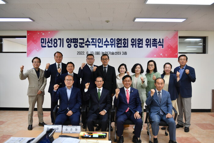민선8기 양평군수직 인수위원회(위원장 황경철)는 지난 13일 10:00에 위원 위촉식 및 현판제막식을 갖고 정식으로 활동을 시작했다.