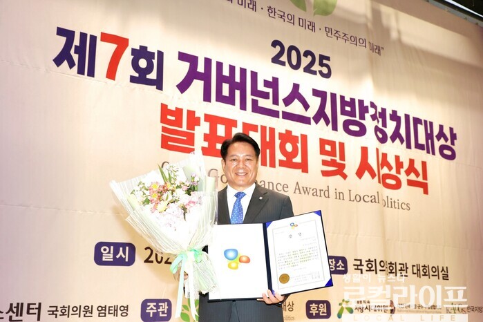 [안양=로컬라이프] 송준형 기자 = 최대호 안양시장이 ‘2025 제7회 거버넌스지방정치대상 발표대회 및 시상식’에서 단체장 부문 대상을 수상했다.