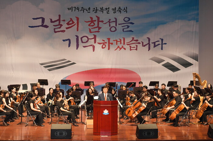 신 시장은 경축사를 통해“오늘 우리는 민족의 독립을 위해 헌신한 모든 분의 숭고한 희생과 노고를 되새기고 그들을 기리기 위해 모였다”라면서“나라를 되찾은 그날의 기쁨과 감격이 우리의 가슴속에서 고동치는 이 뜻깊은 날을 진심으로 축하한다”라고 말했다. 이어“애국선열들의 희생과 헌신을 기억하고 그분들의 숭고한 뜻이 후대에 영원히 이어지도록 선양과 보훈에 더욱 힘쓰겠다”라고 강조했다.