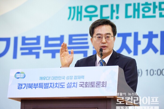 | ▲ 김동연 경기도지사가 ‘경기북부특별자치도 설치 국회토론회’에 참석해 인사말을 하고 있다. (사진출처=김동연 페이스북) |