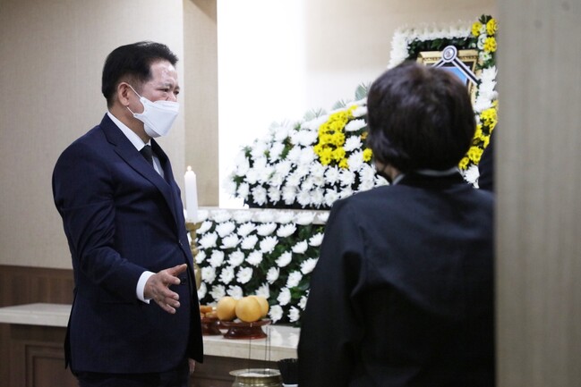 최대호 안양시장이 2일 아침, 도로 공사장 사고 희생자 빈소가 차려진 한림대병원을 찾아 조문했다.