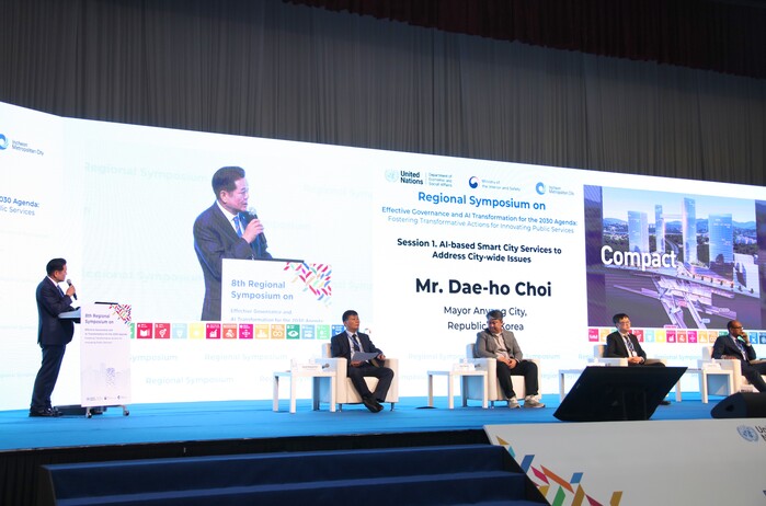 최대호 안양시장이 1일 오전 9시 인천 송도 컨벤시아에서 열린 ‘제8회 유엔 아·태지역 심포지엄’에 참석해 안양시의 인공지능(AI) 기반 스마트도시 우수사례를 공유했다.