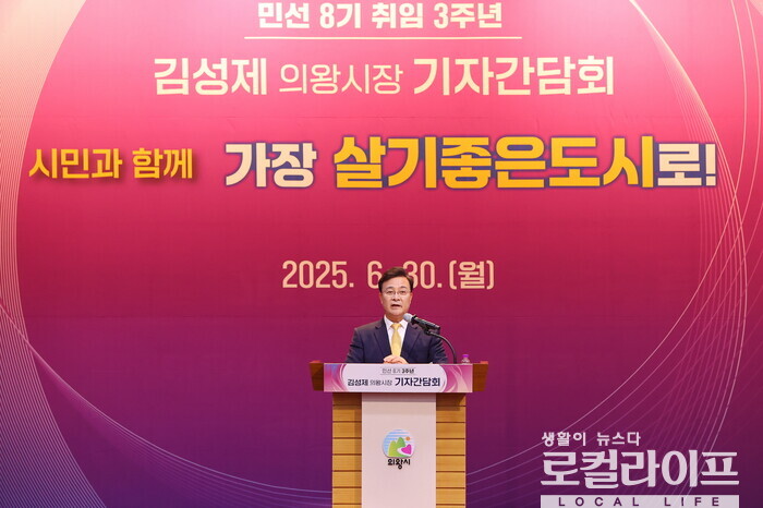 | ▲ 김성제 의왕시장은 '민선8기 3주년 기자간담회'를 통해 "지난 3년간 이뤄낸 성과를 바탕으로, 남은 1년도 시민들과의 약속을 충실히 지키면서 새로운 미래를 준비하겠다"고 밝혔다. (사진제공=의왕시) |