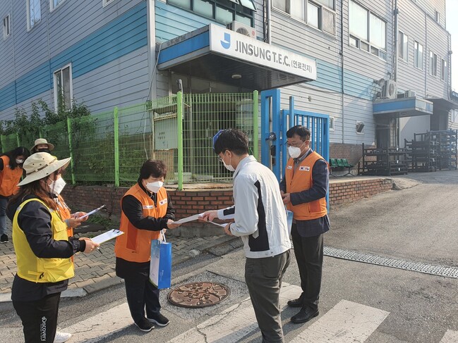 최근 외국인 확진자가 늘고 있는 가운데, 평택시 세교동행정복지센터는 지난 21일 세교산업단지 내 기업체를 대상으로 방역수칙 준수와 외국인근로자 코로나19 예방접종 독려 캠페인에 나섰다.