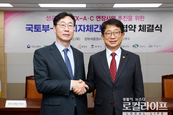 [화성=로컬라이프] 송준형 기자 = 국토교통부와 경기도, 충청남도, 화성시, 오산시, 평택시, 천안시, 아산시, 동두천시 등 8개 지방자치단체는 22일, ‘성공적인 GTX-A·C 연장 사업 추진을 위한 상생협력’을 체결했다.