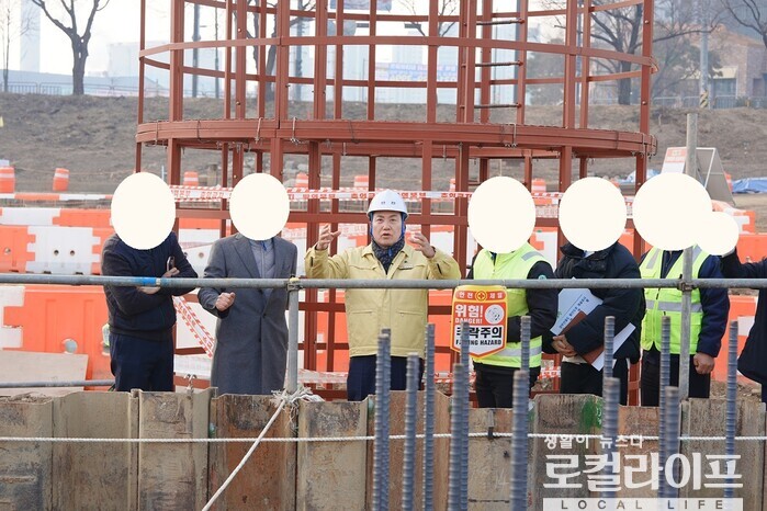 [오산=로컬라이프] 송준형 기자 = 이권재 오산시장이 '경부선 철도 횡단도로 공사 현장'을 찾아 점검했다.