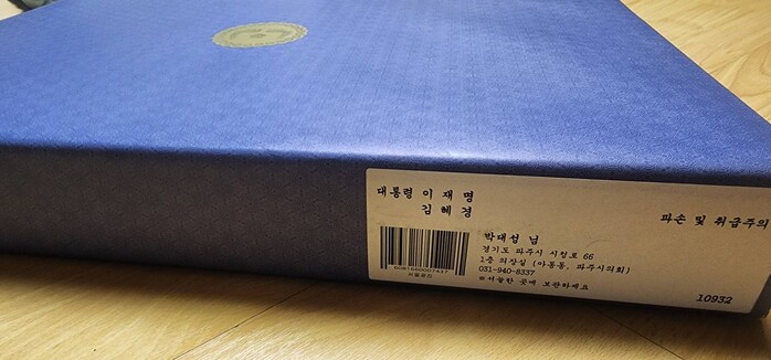 [파주=로컬라이프] 송준형 기자 = 박대성 파주시의회 의장은 8일, 자신의 페이스북을 통해 설을 앞두고 청와대에서 이재명·김혜경 대통령 내외분께서 보내주신 설 선물을 받았다고 밝혔다.