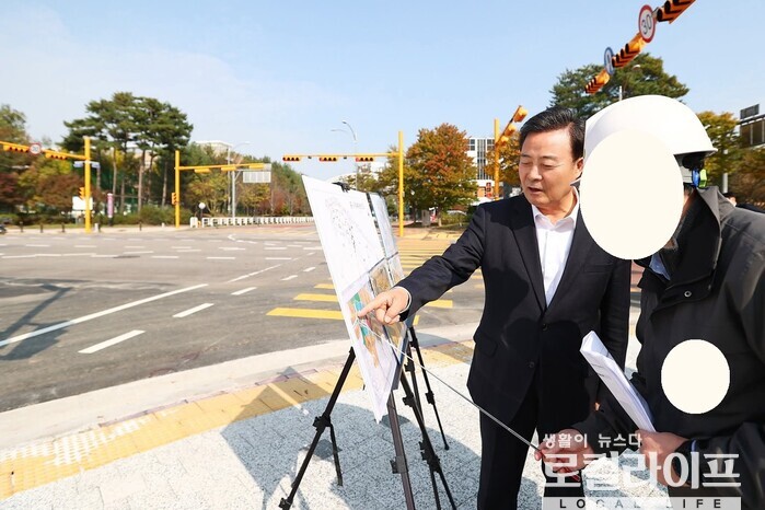 | ▲ 김성제 의왕시장이 초평지구 송부로 임시 개통 구간을 점검하고 있다. (사진출처=김성제 페이스북) |