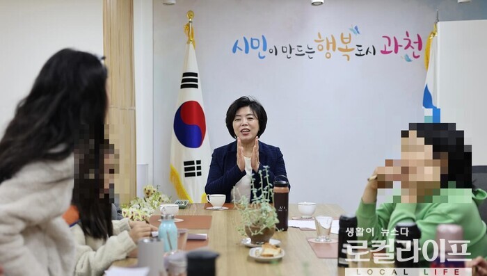 [과천=로컬라이프] 송준형 기자 = 신계용 과천시장이 시장실을 방문한 ‘맑은샘학교’ 학생들과 만났다.