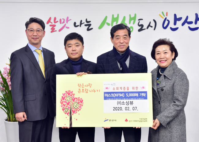 시는 사재기 논란으로 마스크 구입에 어려움을 겪는 취약계층에 전해달라며 기부금 영수증 발급도 희망하지 않는 ㈜소싱뷰의 뜻을 받아들여 관내 장애인복지시설 및 단체에 배분할 예정이다.