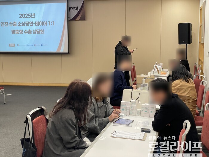[인천=로컬라이프] 박봉민 기자 = 인천지역 소상공인의 해외 수출 판로 개척을 지원하기 위한 '2025년 인천 수출 소상공인-바이어 1:1 맞춤형 수출상담회'가 4일, 송도 컨벤시아에서 개최됐다.